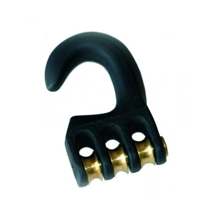 Poulie d’écoute 3 réas pour étarquer au guindant.