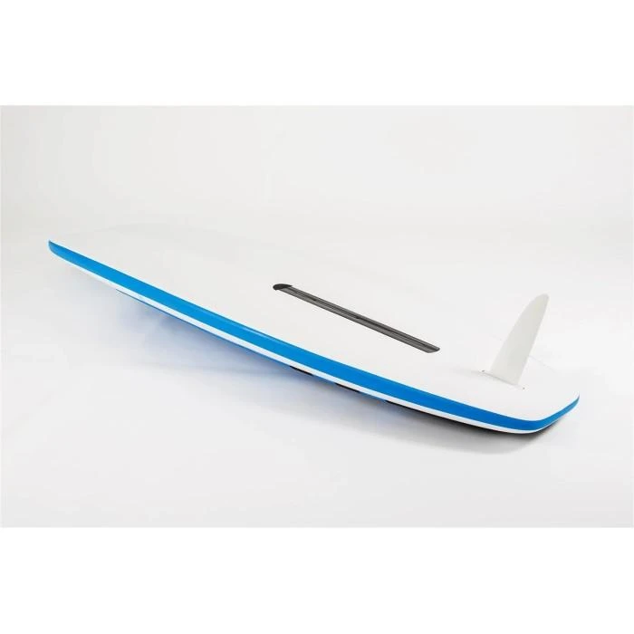 Sa largeur la rend très stable pour sortir la voile de l’eau. Sa longueur et ses rails parallèles lui permettent de caper facilement, même à faible vitesse.