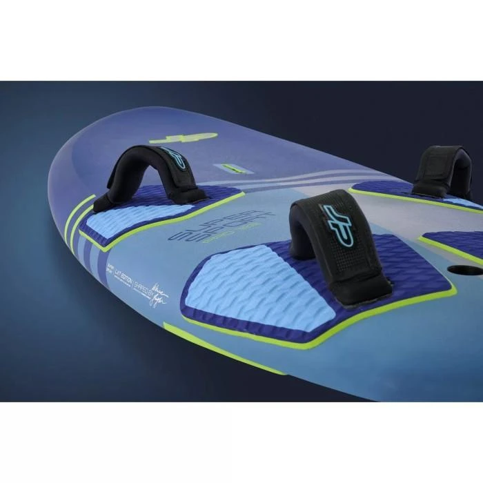 Dans l’ensemble, toutes ces caractéristiques font de cette gamme JP’s Super Sport la plus planante et la plus performante de tous les temps. Ce qui est le plus impressionnant, et qui fait d’elles une référence dans la catégorie free-race, c’est la douceur de conduite, le confort et la facilité. Par conséquent, les planches peuvent être réglées en mode vitesse de pointe facilement et maintenir ce niveau élevé avec peu d’effort. Cerise sur le gâteau, les rails fins et le faible volume du tail permettent d’initier les empannages à cette vitesse en douceur.
