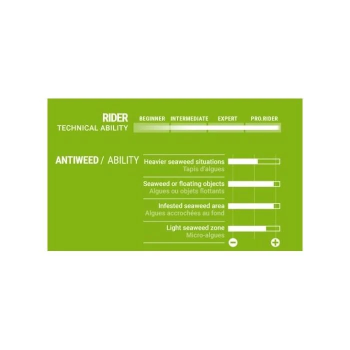 Aileron anti-algues polyvalent avec un bord d’attaque couché à 45°.