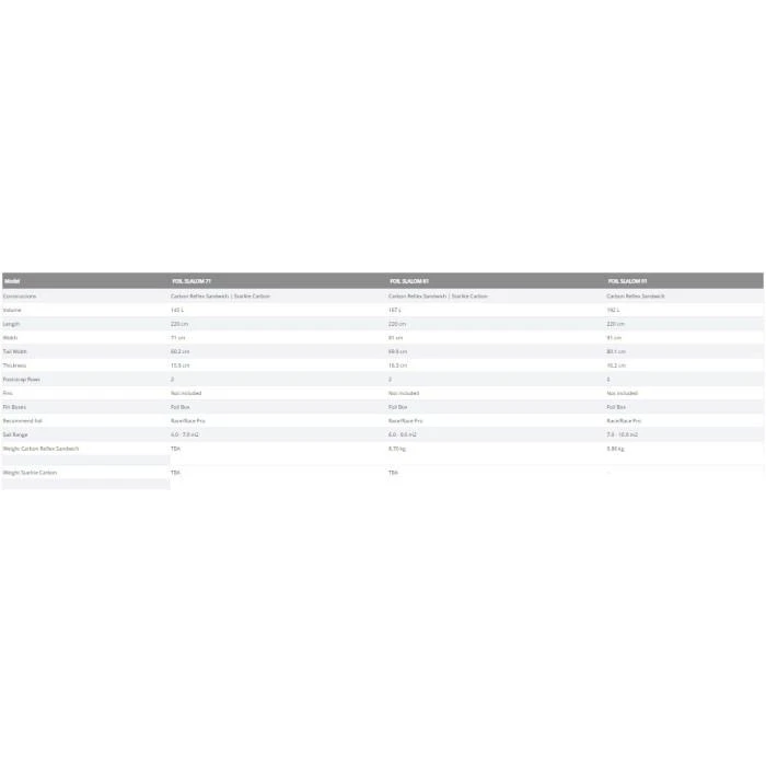 Le 81 partage le même concept que le 91, avec une largeur réduite. Ce modèle est idéal pour les vents moyens avec des riders plus lourds et comme taille polyvalente pour les riders plus légers sur le PWA Foil Slalom Tour.