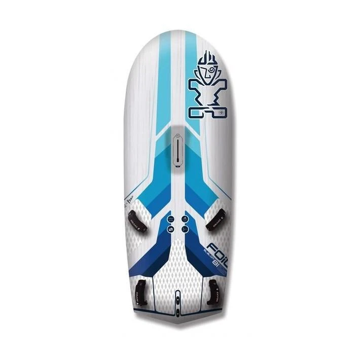 Le concept des pan coupés latéraux a été poussé au maximum pour permettre une vitesse suffisante en mode déplacement pour monter sur le foil, afin de pouvoir décoller avant même d’atteindre les vitesses de déjaugeage. La planche a la forme d’une goutte d’eau du nez à la queue afin de réduire la traînée de l’eau mais aussi d’augmenter l’efficacité aérodynamique. De ce fait, la planche est très glissante et stable dans les airs.