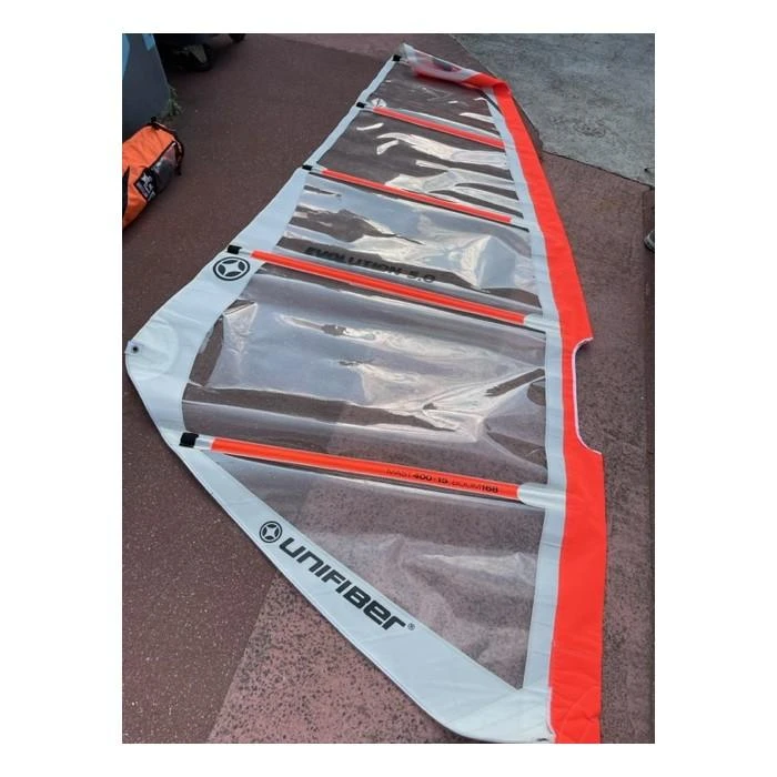 Gréement complet avec voile en excellet état, proche du neuf, gréée pour les meeting mais jamais vu l’eau, mat et wishbone neuf encore sous emballage.